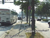 der Straße, hinab zur Regensburger Straße. Lassen wir es laufen, Gehweg hin oder her, hier fahr'n doch nur Radfahrer - Fehler Nr. 3.